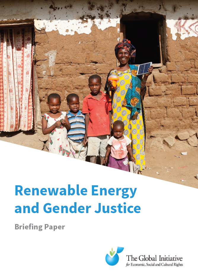 GI-ESCR has launched a Briefing Paper on Renewable Energy and Gender Justice analysing these issues. It provides an overview of the nexus between renewable energy and gender justice, drawing out several of the most significant opportunities and risks that the clean energy transition presents for women’s rights. It includes two case studies: from South Africa, on access to energy in urban communities, and from Mexico, on the impact of large-scale energy projects on human rights and how women human rights defenders are standing up for their communities’ rights.